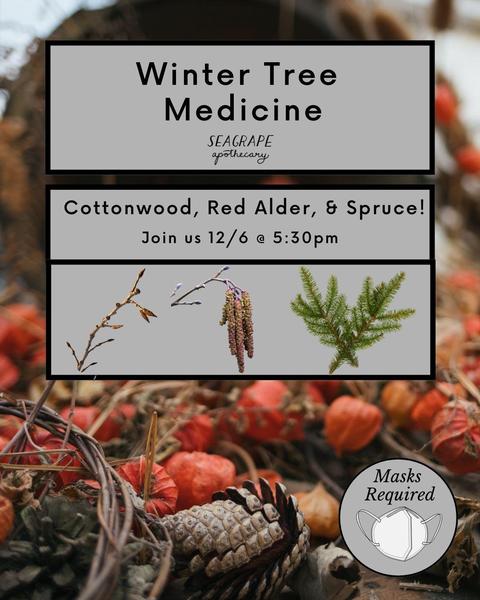 To celebrate the magic & depth of the Wintertime season we will delve into the medicinal properties, ecological roles, and historical ethnobotanical uses of cottonwood, red alder, and spruce, and how these wise beings support our bodies & hearts in the darkest days as well as consider how to relate to these plants in